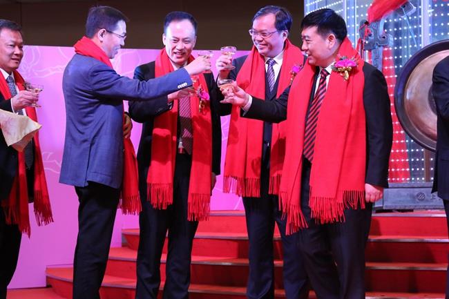 上圖為陳慶堂董事長與張帆等嘉賓及上交所領(lǐng)導(dǎo)舉杯共慶天馬科技成功上市