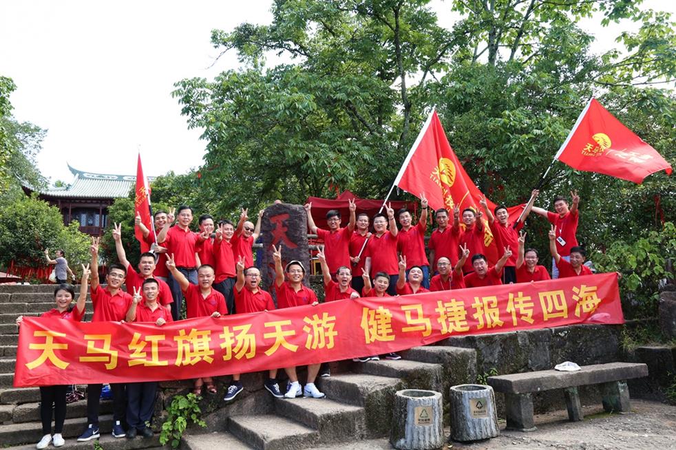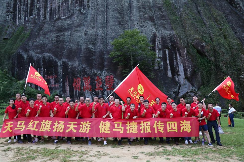 天馬科技訊  “天馬紅旗揚天游,健馬捷報傳四海。”719日,世界自然與文化雙世遺產勝地武夷山天游峰頂傳來天馬人的陣陣爽朗的笑聲。為豐富、活躍集團員工的業余文化生活,和著2017年半年度經營分析會擂響的戰鼓,天馬科技在經營分析會結束后,組織三十多名集團精英代表挑戰自我,開展了勇攀武夷山第一勝地天游峰活動,并在其后進行九曲漂流、觀看《印象大紅袍》山水實景演出,體驗武夷山文化,積蓄沖刺年度經營目標的力量。