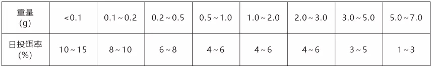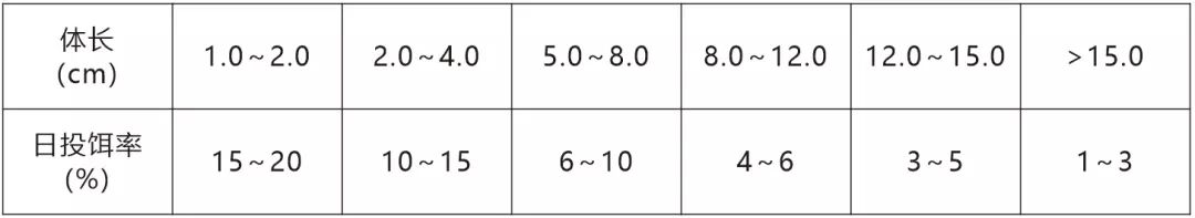 注:具體投喂量根據(jù)水溫、水質(zhì)和攝食情況適時調(diào)整。