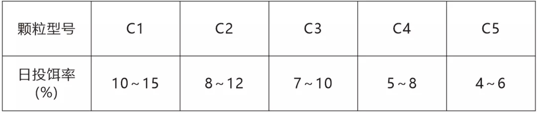注:具體投喂量根據(jù)溫度、水質(zhì)和攝食情況適時調(diào)整。